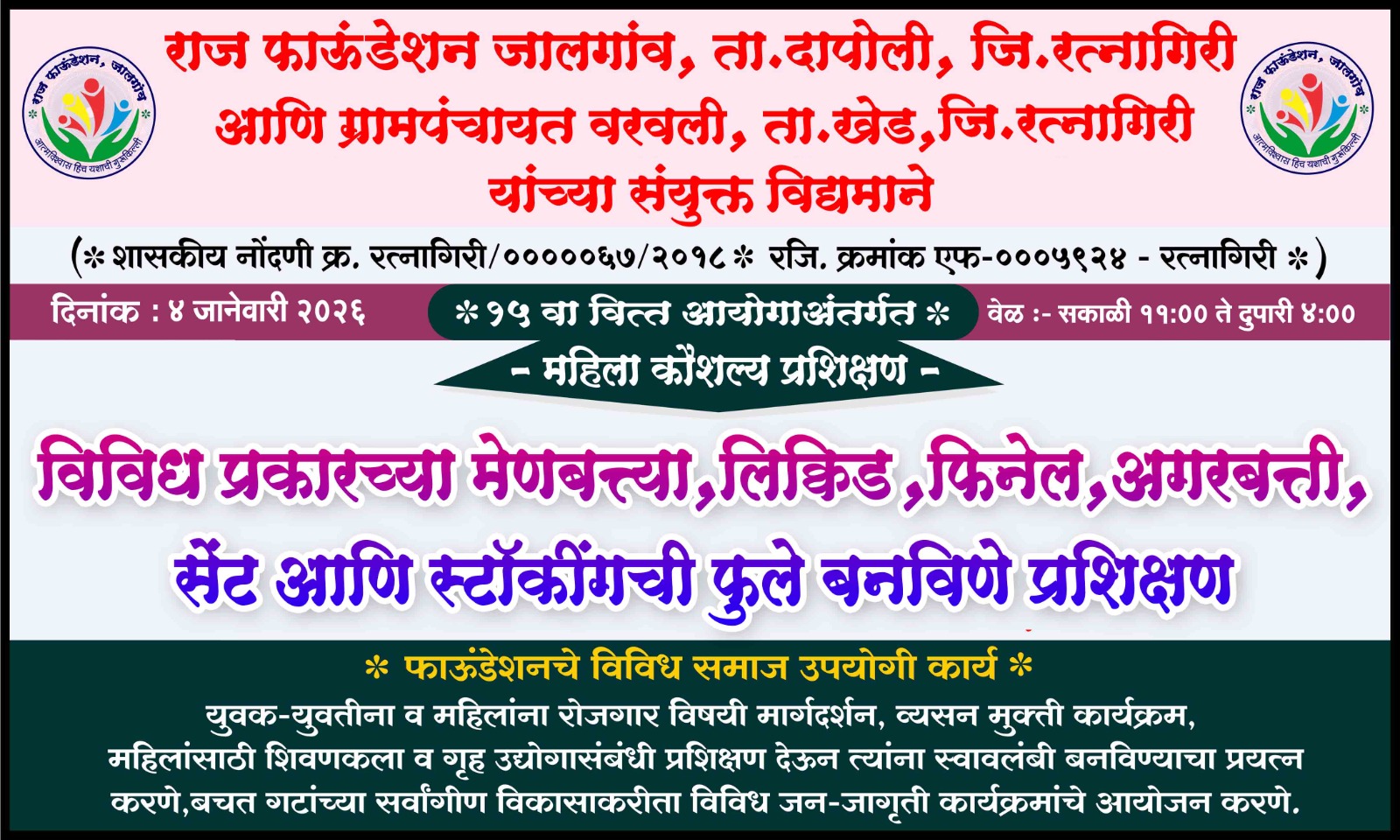ग्रामपंचायत वरवली कडून शनिवारी दिनांक १०/०१/२०२६ रोजी बचत गटातील महिलांना व्यवसाय कौशल्य प्रशिक्षण देण्यात आले.